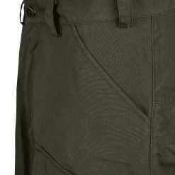 Die Hose besteht aus G-1000 Silent Eco, das gleich in mehrfacher Hinsicht überzeugt: So ist das Material extrem robust und abriebfest und eignet sich damit hervorragend für Förster, Waldarbeiter und alle anderen, die sich lange im rauen Gelände aufhalten. Zudem ist das Material, wie sein Name bereits verrät, besonders geräuscharm. Optimal, wenn du beim Durchstreifen der Wälder unbemerkt Tiere beobachten willst! Das atmungsaktive Material ist dank seiner Wachs-Imprägnierung dauerhaft wasserabweisend, sodass du im Falle eines leichten Regenschauers nicht sofort eine Regenhose überziehen musst. In den vielen praktischen Taschen kannst du Karten, Kompass, Messer und viele andere nützliche Dinge aufbewahren.