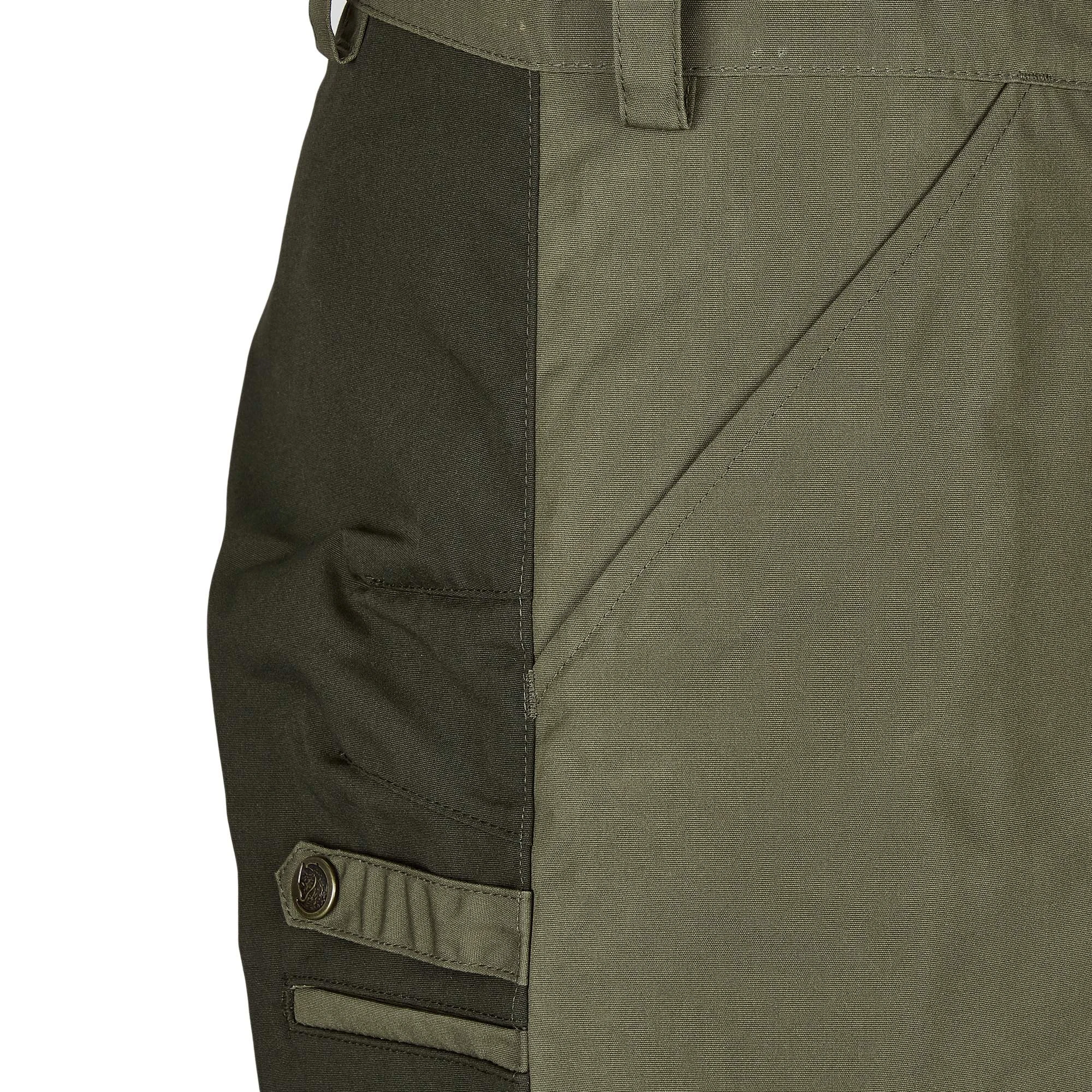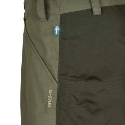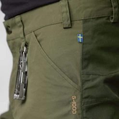 Ganz typisch Fjällräven kommt hier das bewährte G-1000 Material aus einem Mix aus recyceltem Polyester und Bio-Baumwolle zum Einsatz. Der abriebfeste Stoff trocknet sehr schnell, leitet Körperfeuchtigkeit nach außen ab und ist dazu noch mückenfest. Im Gesäß- und Kniebereich wurde das Material doppelt gelegt, um an diesen Stellen für mehr Robustheit zu sorgen.